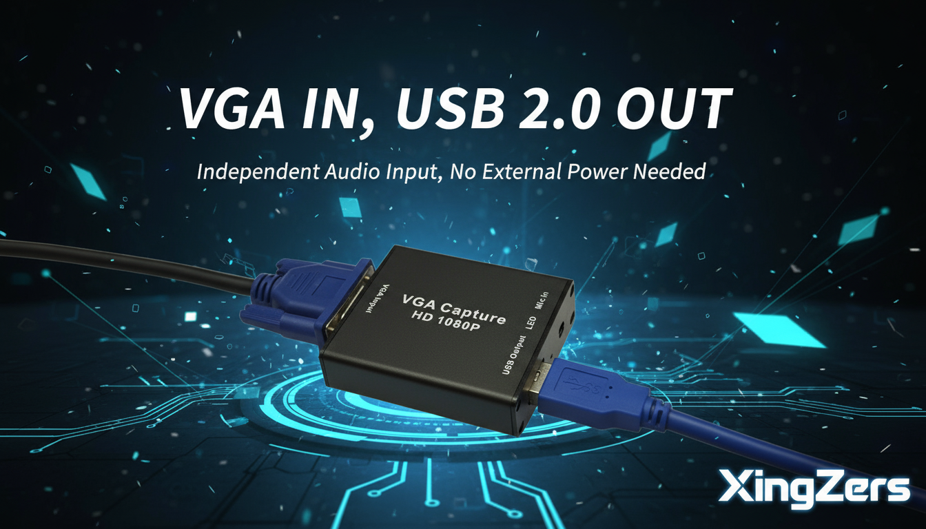 XingZers VGA to USB 1080P Video Capture Card with Audio – Plug & Play USB 2.0/3.0 Converter for PC, Laptop, Android, and Linux